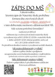 Letošní zápis do Mateřské školy Hustopeče nad Bečvou se uskuteční ve čtvrtek 2.4.2026. Více informací v příloze.