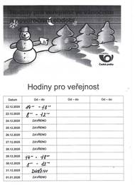 Vážení občané, obecní úřad bude v době od 24.12.2025 do 2.1.2026 uzavřen. Děkujeme za pochopení.