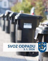 Oznamujeme občanům, že vývoz směsného komunálního odpadu na sváteční Nový rok 1.1.2026 nebude probíhat a je přesunut na sobotu 3.1.2026. Tuto informaci najdete i v obecním kalendáři.