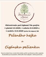 Občerstvenie pod Lipkami 1.-2.8.2025 cigánska pečienka a hejk