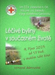 Na besedu s Mgr. Kateřinou Geržovou "Léčivé byliny v současném životě" zve místní skupina Českého červeného kříže. Uskuteční se 9. října v malém sále kina.