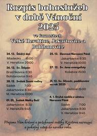 Rozpis bohoslužeb v době Vánoční 2025