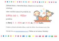 Zápis proběhne v úterý 3. 2. 2026 v době od 14:30-15:30 hodin.