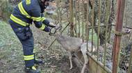 Hasiči v Jaroslavicích vysvobodili zraněného srnce z kovové pasti