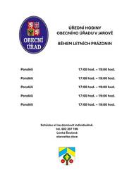 Úřední hodiny obecního úřadu v Jarově po dobu letních prázdnin.