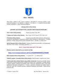 Obec Trstín sa na nás obrátila s prosbou o zverejnenie vyhlásenej dobrovoľnej zbierky na pomoc po požiari pre ich občanov . Bližšie informácie v priloženom dokumente.