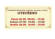 Otevřeno bude v sobotu 27. 6. 2025 od 10:00 - 16:00 hod. a v neděli 28. 9. 2025 od 10:00 - 15:00 hod.
