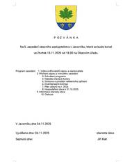 Pozvánka na 5. zasedání obecního zastupitelstva v Javorníku, které se bude konat ve čtvrtek 13.11.2025 od 18:00 na Obecním úřadu Javorník.