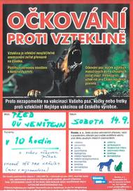 Vakcinace zvířat proběhne v Jenštejně před budovou obecního úřadu v sobotu 14. září 2024 v 10 hodin, následně pak v Dehtárech v 10:30 - 11 hodin u autobusové zastávky. Vhodné též pro domácí králíky (mor + myxomatoza).
