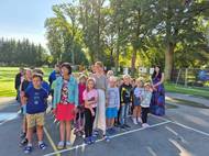 Ve středu 3. září se žáci naší školy shromáždili na hřišti, kam je po cvičném požárním poplachu přivedli jejich učitelé.