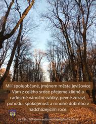 Milí občané, rádi bychom Vám tímto popřáli krásné svátky vánoční. Užijte si je v kruh u svých blízkých, Ježíšek, nechť Vám i Vašim blízkým, partnerům, dětem, vnoučatům, donese vše, co jste si přáli. Hlavně svátky prožijte v klidu a pohodě. Děkujme Vám za spolupráci v uplynulém roce a těšíme si již na společnou cestu v roce 2026. Vám všem přejeme, aby rok 2026 byl úspěšný, a hlavně nám všem přinesl zdraví a spokojenost. Krásné Vánoce město Jevišovice