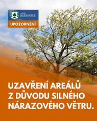 Z důvodu silného nárazového větru jsou dočasně uzavřeny tyto areály: - Katolický hřbitov - hrozí pád větví a stromů - Zámecký park – zejména prostor u modřínů - Zároveň nedoporučujeme vstupovat do lesů a do Všesportovního areálu Hraběnka.