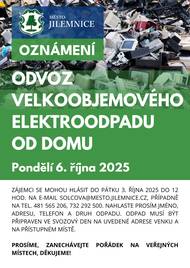 Svoz velkoobjemového elektroodpadu se uskuteční 6. října 2025.