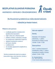 Dostali jste se do finančních potíží? Na Jilemnicku, Semilsku a Železnobrodsku působí Bezplatná dluhová poradna organizace Člověk v tísni, která pomáhá lidem hledat řešení složitých finančních situací.