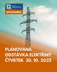 Upozorňujeme na plánované přerušení dodávky elektrické energie v těchto lokalitách Jilemnice: - Čsl. Legií č. p. 307, 341, 527, 528, 580, 1251 - Ke Koupališti č. p. 524, 533 - Na Račanech č. p. 203, 526, 530, 531, 535, 557, 951, 1222 Termín: 30. 10. 2025 Čas: 07:30 - 15:30