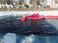 Ukázka výcviku dobrovolných hasičů – záchrana osob z ledu