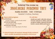 Srdečně Vás zveme na JINOČANSKÉ PODZIMNÍ TRHY, které se uskuteční v neděli 21.9.2025 od 9:30 do 17:00 hodin na Náměstí 5. května Program: 10:00 pohádka Nebojsa v podání divadla Neklid 11:00-16:00 lezecká stěna pro děti i dospělé 12:00 - 17:00 k poslechu i tanci hraje skupina The Black Po celý den budou atrakce pro malé i velké děti, dočasné tetování, malování na obličej, malování na sádrové odlitky, malování dřevěných hraček a mnoho dalších překvapení. Ve stáncích budete mít možnost zakoupit široký sortiment zboží, výrobků, farmářských produktů a občerstvení