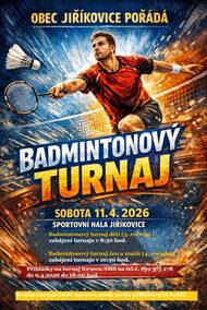 Obec Jiříkovice pořádá v sobotu 11.4.2026 další ročník badmintonového turnaje.
