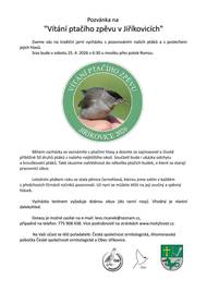 Česká společnost ornitologická ve spolupráci s obcí Jiříkovice vás zve na jarní vycházku spojenou s pozorováním ptáků a poslechem jejich hlasů.