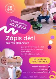 Dětská skupina Josefka v Josefově vyhlašuje zápis dětí pro školní rok 2026/2027.