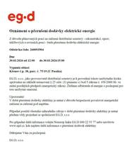 Přerušení dodávky elektrické energie - 30. 3. 2026 - Křenov čp. 38