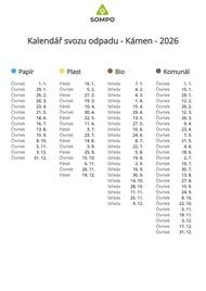 Vážení občané, zde je kalendář svozu odpadu SOMPO na rok 2026.