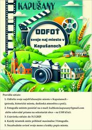 Do 31. 5. 2025 je stále možnosť zapojiť sa do súťaže Odfoť svoje naj miesto v Kapušanoch! Neváhajte a zapojte sa aj vy vlastnou fotografiou.