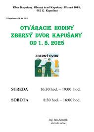 V Kapušanoch 03. 04. 2025 Oprávnená osoba SLOVENSKÉ KOMINÁRSTVO ponúka kontrolu, čistenie a údržbu komínov spolu s vydaním kontrolnej správy v súlade s platnou legislatívou. V našej obci prebehnú práce v sobotu 5. apríla 2025. V prípade, že máte záujem o túto službu, kontaktujte obecný úrad na tel. čísle: +421 907 842 151, príp. si objednajte službu e-mailom na: sekretariat@kapusany.sk (kontaktná osoba Mgr. Verčimáková). Cenník prác: a) realizácia kontroly a vydanie kontrolnej správy 25,00 EUR b) realizácia kontroly, čistenie komínov a vydanie kontrolnej správy 35,00 EUR