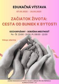 Srdečne vás pozývame na jedinečnú výstavu, ktorá odhaľuje krásu, silu a nezmerateľnú hodnotu života už od prvého okamihu počatia. Výstava je fascinujúcou cestou, ktorá vás prevedie vývojom človeka v lone matky – od nepatrného zárodku až po plne vyvinutú bytosť pripravenú na príchod na svet. Výstava Začiatok života: Cesta od buniek k bytosti, slovom a obrazom oslavuje každý krok prenatálneho vývoja a pripomína, že život je vzácny a hodný ochrany od prvého momentu. Život je vzácny. Ochrana života začína už v okamihu počatia. Kde: OcÚ – Sobášna miestnosť