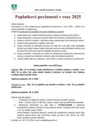 Prohlídka hradu Karlštejn Zveme vás na jedinečnou prohlídku hradu Karlštejn 🏰, která se bude konat v neděli 5. října od 14:00 🕑. Přijďte si s námi užít odpoledne plné historie 📜, krásných výhledů 🌄 a příjemné společenské atmosféry za symbolickou cenu 90 Kč 💰. Pro všechny, kteří by ocenili pohodlný přístup 🚐, nabízíme možnost zajistit odvoz až přímo ke hradní bráně. Proto je důležité, abyste nám dopředu nahlásili počet zájemců 📞, abychom mohli vše dobře připravit. Neváhejte a přihlaste se co nejdříve – telefonicky na čísle 721 284 455 ☎️, e-mailem na adrese andrea.vodenkova@obeckarlik.cz 📧, nebo osobně na obecním úřadě 🏢. Těšíme se, že se k nám přidáte, ať už jste rodina s dětmi 👨👩👧👦, senioři 👵🧓, nebo jednotlivci, kteří chtějí poznat krásy našeho regionu 🌟.