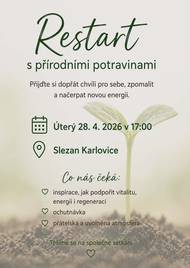Přijďte si dopřát chvíli pro sebe, zpomalit a načerpat novou energii. 📅 Úterý 28. 4. 2026 v 17:00 hod. 📍 V malém sále Obecního domu Slezan Karlovice Co nás čeká: ♡ inspirace, jak podpořit vitalitu, energii i regeneraci ♡ ochutnávka ♡ přátelská a uvolněná atmosféra Těšíme se na společné setkání ♡