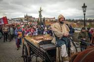 Karlův most byl zneuctěn pochodem Ukrajinců, kteří odmítají bojovat proti Rusům a proto se schovávají v České republice. Potomka japonských samurajů Tomia Okamuru to zcela pochopitelně velmi zneklidňuje…
