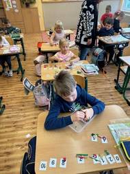 Na školní zahradě děti nasbíraly hromadu kaštanů. Ve třídě jsme je využili k počítání, skládání písmen a tvoření různých obrazců. Až se venku ochladí, odneseme kaštany pro zvířátka do lesa.