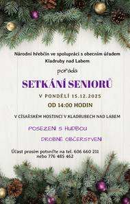 Dovolujeme si Vás informovat o dočasné změně hodin pro veřejnost pošty Kladruby nad Labem. Rozsah hodin pro veřejnost bude omezen na nezbytně nutnou dobu od 09:00 do 14:00 hodin dne 18.12.2025 z provozních důvodů.
