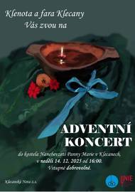 Klenota a fara Klecany Vás zvou v neděli 14. 12. 2025 od 16.00 hodin do kostela Nanebevzetí Panny Marie v Klecanech na Adventní koncert.