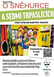 18. 1. 2026 od 16.00 hodin v KC Rychta Klecany zahraje Divadlo KK klasickou pohádku o princezně Sněhurce, sedmi trpaslících, zlé královně a krásném princi.