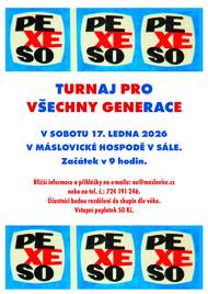 V sobotu 17. 1. 2026 se uskuteční v sále Máslovické hospody turnaj v pexesu. Začátek v 9.00 hodin.