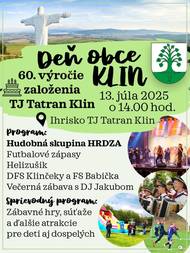 Športovy deň sa bude konať v obci Klin dňa 13 07. 2026. o 14.00