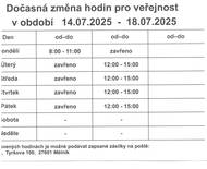 Pošta Kly oznamuje změnu provozní doby v týdnu 14.-14.7.2025