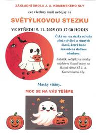 ZŠ Kly vás zve na Světýlkovou stezku ve středu 5.11.2025 od 17:30 hod.