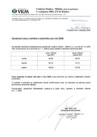 VKM oznamují ceny vodného a stočného na rok 2026. Ceny zůstávají stejné jako letos.