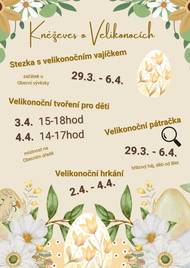 V Kněževsi je o Velikonocích pro děti připravena od 29.3.-6.4. stezka s velikonočním vajíčkem, začátek u vývěsky OÚ, velikonoční pátračka, a velikonoční tvoření 3.4. 15-18 h, 4.4. 14-17 h na OU.
