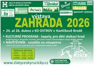 Jaro je tady a s ním i další ročník výstavy ZAHRADA v Havlíčkově Brodě. Tato, na Vysočině ojedinělá, výstava není určená pouze pro zahradníky a zahrádkáře. Ve dnech od 24. do 26. dubna 2026 si zde nakoupíte nejen květiny, sadbu, stromky, nářadí na zahradu, ale i doplňkový sortiment jako je keramika, proutěné zboží, dřevěné hračky, koření, potřeby pro domácnost a další. Pořadatel, havlíčkobrodská firma GEONOVA s.r.o., zve i na bohatý kulturní program s možností posezení a občerstvení. Ani letos nebudou chybět návštěvnické soutěže a ocenění každého, který projde jako pětistý branami výstavy. Pro nejmenší návštěvníky bude opět připraven oblíbený skákací hrad. Výstaviště bude otevřeno v pátek 9 – 17 hod., v sobotu 9 – 17 hod. a v neděli 9 – 16 hodin. Je umístěno 10 minut chůze od vlakového i autobusového nádraží. Pokud se návštěvníci rozhodnou využít k návštěvě automobil, je možné zaparkovat na parkovišti u Krajské knihovny sousedící s výstavištěm. Další informace o výstavě se dozvíte na www.zlatyceskyrucicky.cz, kam pořadatelé postupně zaznamenávají všechny novinky.