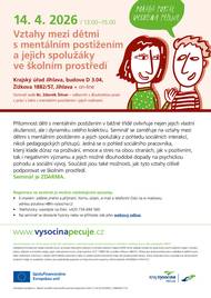 V rámci evropského projektu „Komplexní podpora v oblasti sociálně zdravotního pomezí“ realizuje Kraj Vysočina v měsíci dubnu 2026 aktivity pro pečující ZDARMA. Nabídka na měsíc duben: Kurz „Vztahy mezi dětmi s mentálním postižením a jejich spolužáky ve školním prostředí“ online kurz „Specifika péče v domácím prostředí“ realizovaný ve městech Moravské Budějovice, Jihlava, Velké Meziříčí, Pelhřimov, Havlíčkův Brod v Komunitním centru Plus, které sídlí v Sociálním centru Kraje Vysočina na Rantířovské ulici v Jihlavě, probíhá spoustu zajímavých aktivit. Pro všechny pečující je otevřena Poradna Vysočina pečuje, která zdarma nabízí poradenství pro pečující osoby a také psychoterapeutické poradenství. Letáček s telefonními kontakty naleznete také v příloze. Většina aktivit probíhá ve všech okresních městech Vysočiny nebo online. Poradnu pro pečující je možné kontaktovat telefonicky, osobně nebo e-mailem. Veškeré informace naleznete také na www.vysocinapecuje.cz a průběžně také na Facebooku Kraje Vysočina.