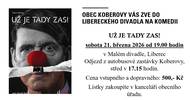 Obec Koberovy vás srdečně zve na komedii "Už je tady zas!" v sobotu 21. března 2026. Začátek v 19:00 hodin v Malém divadle v Liberci, odjezd z autobusové zastávky Koberovy v 17:15 hodin. Cena vstupného včetně dopravy je 500 Kč.