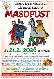 Masopust v Koberovech se uskuteční 21. února 2026 od 11 hodin před Obecním úřadem. Návštěvníci se mohou těšit na ochutnávky zabijačkových specialit, masopustních koblih a koláčů.