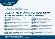 Pri príležitosti Dňa nezávislej advokácie budú advokáti dňa 22. apríla 2026 v čase od 9:00 do 14:00 hod. v MsKS, Hviezdoslavova 4, Nové Mesto nad Váhom poskytovať bezplatnú právnu pomoc každému, kto ju potrebuje. Občania z okresu Nové Mesto nad Váhom môžu túto pomoc využiť najbližšie v meste Trenčín a Nové Mesto nad Váhom.