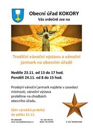 Kokory: Dnes od 13 do 17 h probiha na Obecnim urade vanocni vystava a jarmark. Prijdte se podivat, vanocne naladit ci nakoupit si drobnosti na Vanoce. Zitra pokracujeme od 8 do 15 h.
