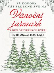 Kokory: Zakladni skola Kokory srdecne zve na Vanocni jarmark a den otevrenych dveri dnes od 15:00. Muzete se tesit na prodej vanocnich vyrobku, tvorive dilnicky a vystoupeni deti. Prijdte podporit deti a uzit si krasnu vanocni atmosferu!