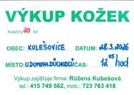 V obci Kolešovice se uskuteční výkup kožek, který zajišťuje firma Růžena Kubešová.